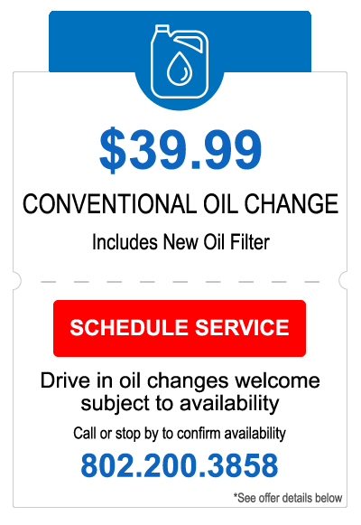 At Central Vermont Auto Mart, an oil change means more than just oil replacement-it involves a multi-point vehicle inspection to maintain your vehicle's peak performance. With service options ranging from a conventional motor oil change to a full synthetic oil change required by many of today's cars engineered with very close tolerances, our team will help you select the best oil change for your vehicle's needs. Rest assured that your vehicle with every oil change, will receive the following: